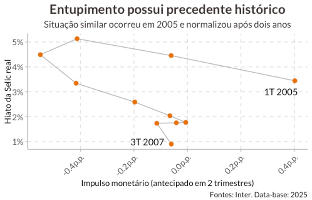 Assim, o desentupimento desse canal está possivelmente condicionado a reformas fiscais críveis, que desbloqueariam o fluxo de carrytrade de maneira mais intensa, apreciando o câmbio e ajudando os esforços de desinflação.