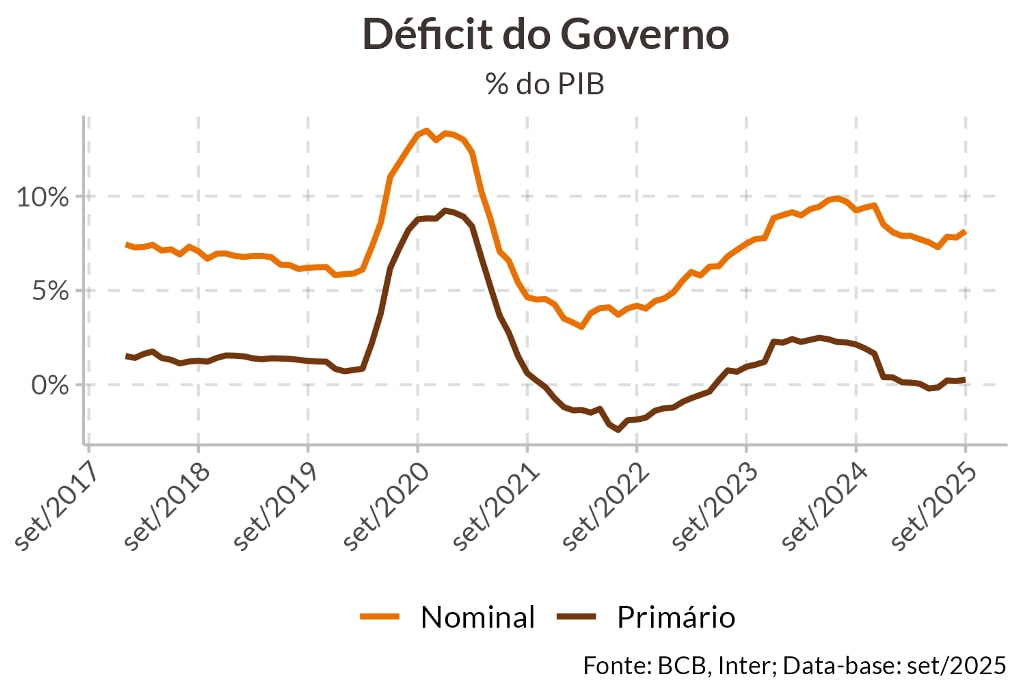 O risco fiscal continuará sendo tema principal em 2026. A arrecadação cresceu, mas não o suficiente para zerar o déficit. Depois de um primeiro semestre de 2025 mais contido, os gastos aceleraram na segunda metade do ano e projetamos déficit primário de 0,5% do PIB em 2025 e de 0,8% em 2026. As despesas devem crescer cerca de 20% em termos reais em quatro anos, com concentração nas transferências de renda às famílias. Esse impulso apoiou o consumo, mas torna o ajuste mais difícil à frente. O déficit nominal gira em torno de 8% do PIB, pressionado pelo elevado custo da dívida. Retomar a credibilidade fiscal é condição essencial para reduzir a taxa de juro neutra e, por consequência, baratear o serviço da dívida e estabilizar sua trajetória.