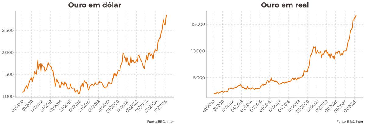 Em minha humilde opinião, esses ativos são melhor avaliados em dólar, visto que o ouro é internacionalmente negociado. No entanto, considerando que nosso custo de oportunidade é em real, representado pelo CDI, apresentamos os estudos em ambas as moedas.